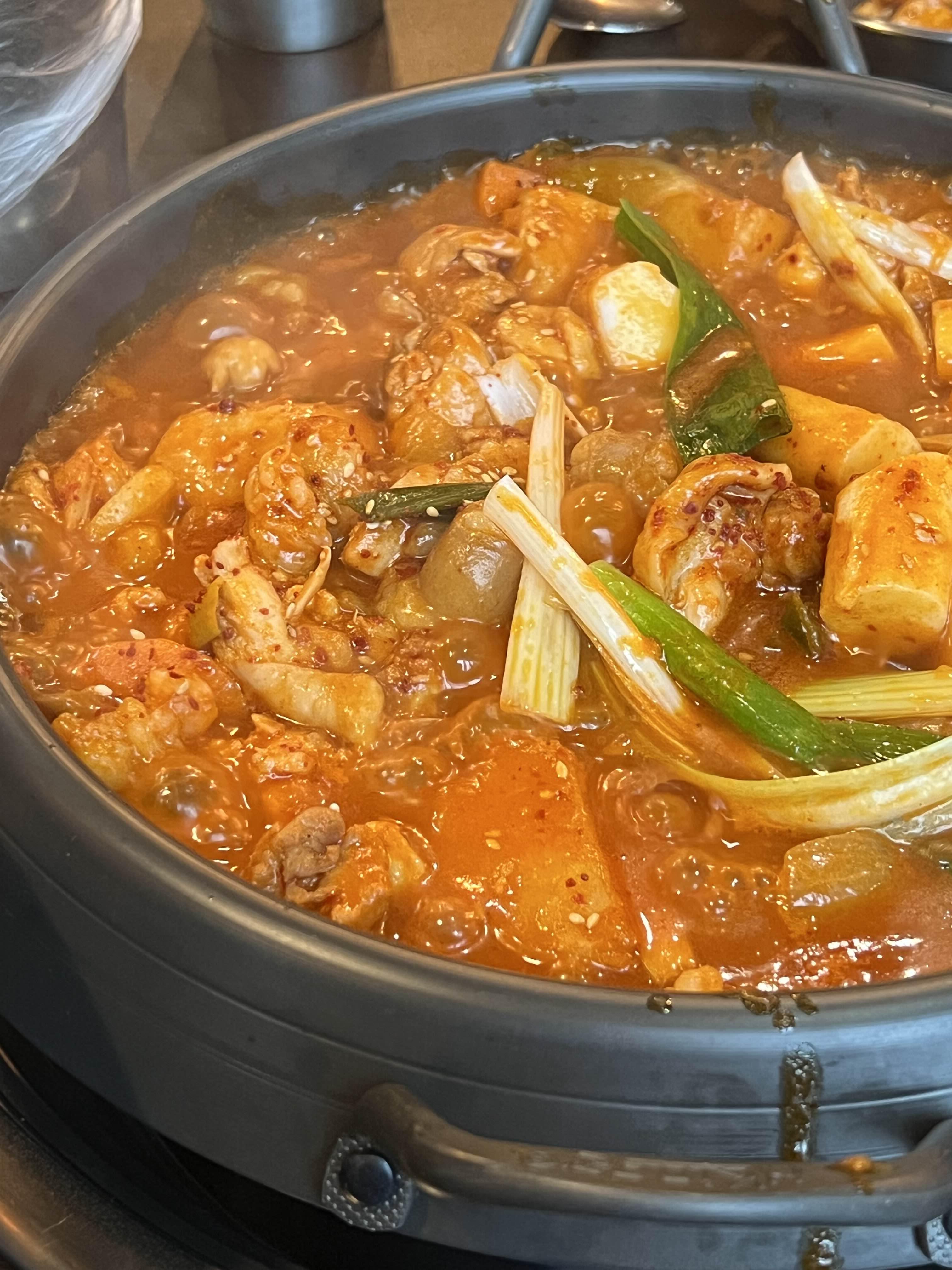 부산 동래 웨이팅 맛집 엄지척닭도리 본점 부산 동래 한식 맛집 엄지척 닭도리 본점에 갔어요. 카카오 지도에는 엄지척닭도리 동래점으로 뜨네요. 동래역이랑 엄청 가깝습니다. 주변에 술집이 많아서 닭도리 먹고 2차로 다른 곳 가기 좋은 위치입니다. 6시 이전에 갔는데도 손님이 거의 꽉 차있었어요. 닭도리 1등 맛집! 많은 손님들이 증명해 주네요. 메뉴판입니다. 닭도리, 곱도리, 꽃도리탕, 닭강정 등이 있어요. 당일 도축한 신선한 하림닭을 사용하며, 곱창은 한우곱창을 사용한다고 합니다. 테이블은 11개 정도 있어요. 단체 손님도 가능하답니다. 하이볼, 계란말이도 있어요. 밑반찬입니다. 쏘야, 양파절임, 깍두기, 감자사라다, 동치미입니다. 곱도리탕 순살 - 34,000원 닭, 곱창, 메추리알, 수제비, 감자, 양파, 파, 당근, 납작만두 등이 들어있어요.. 냠냠/식당 & 술집 2023.10.01